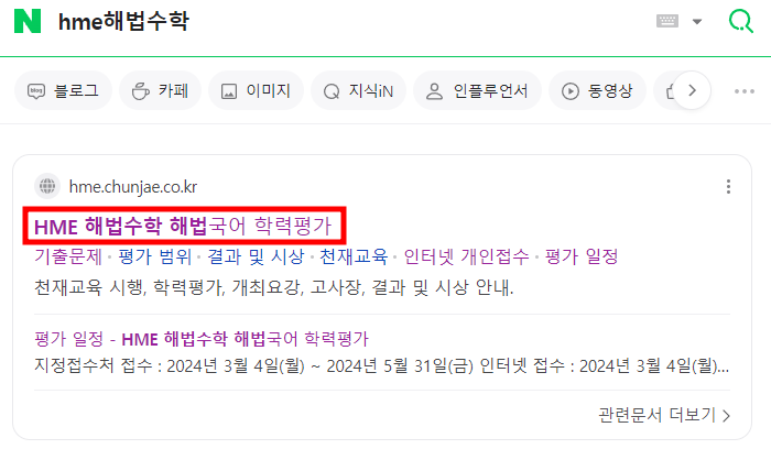 1. 네이버에 HME해법수학으로 검색합니다. 아래 링크를 통해서도 접수가 가능합니다.