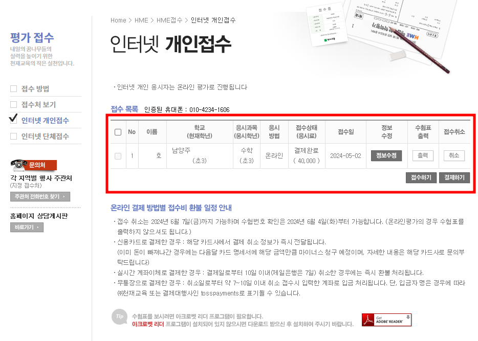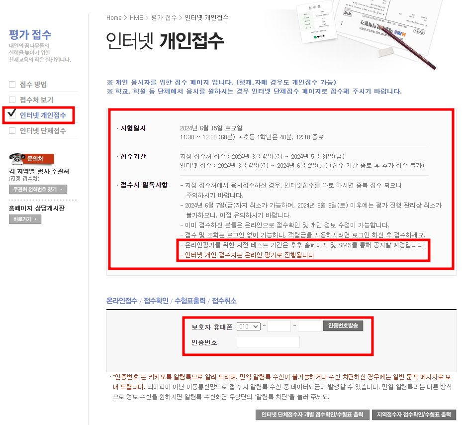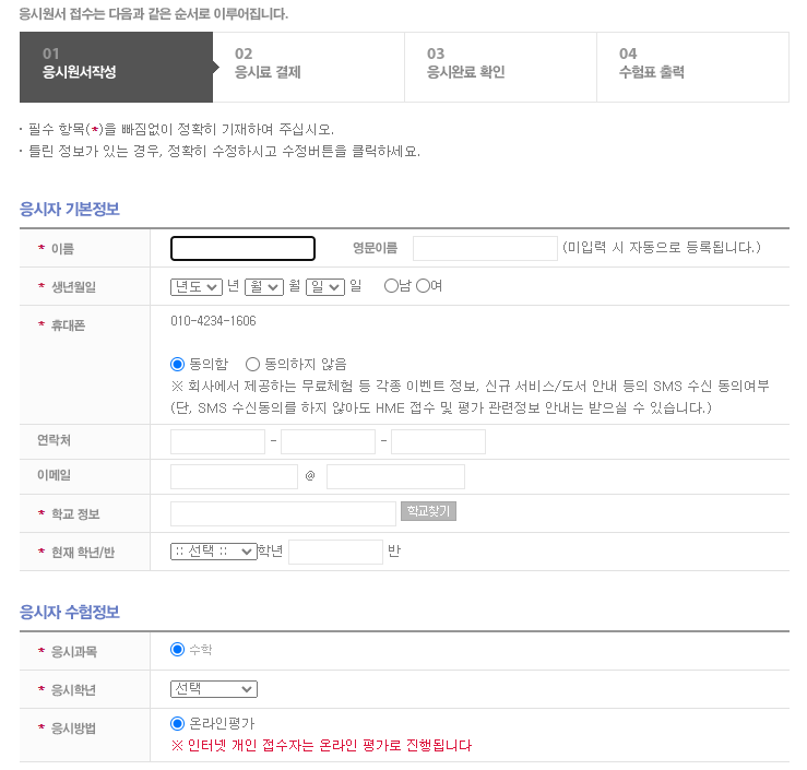 1. 2024 상반기 HME 수학능력시험 접수 방법