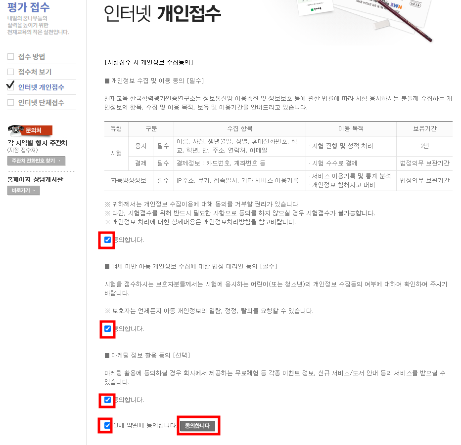 개인접수를 하시는 분들은 아래를 보시고 차근차근 접수해 보시기 바랍니다.